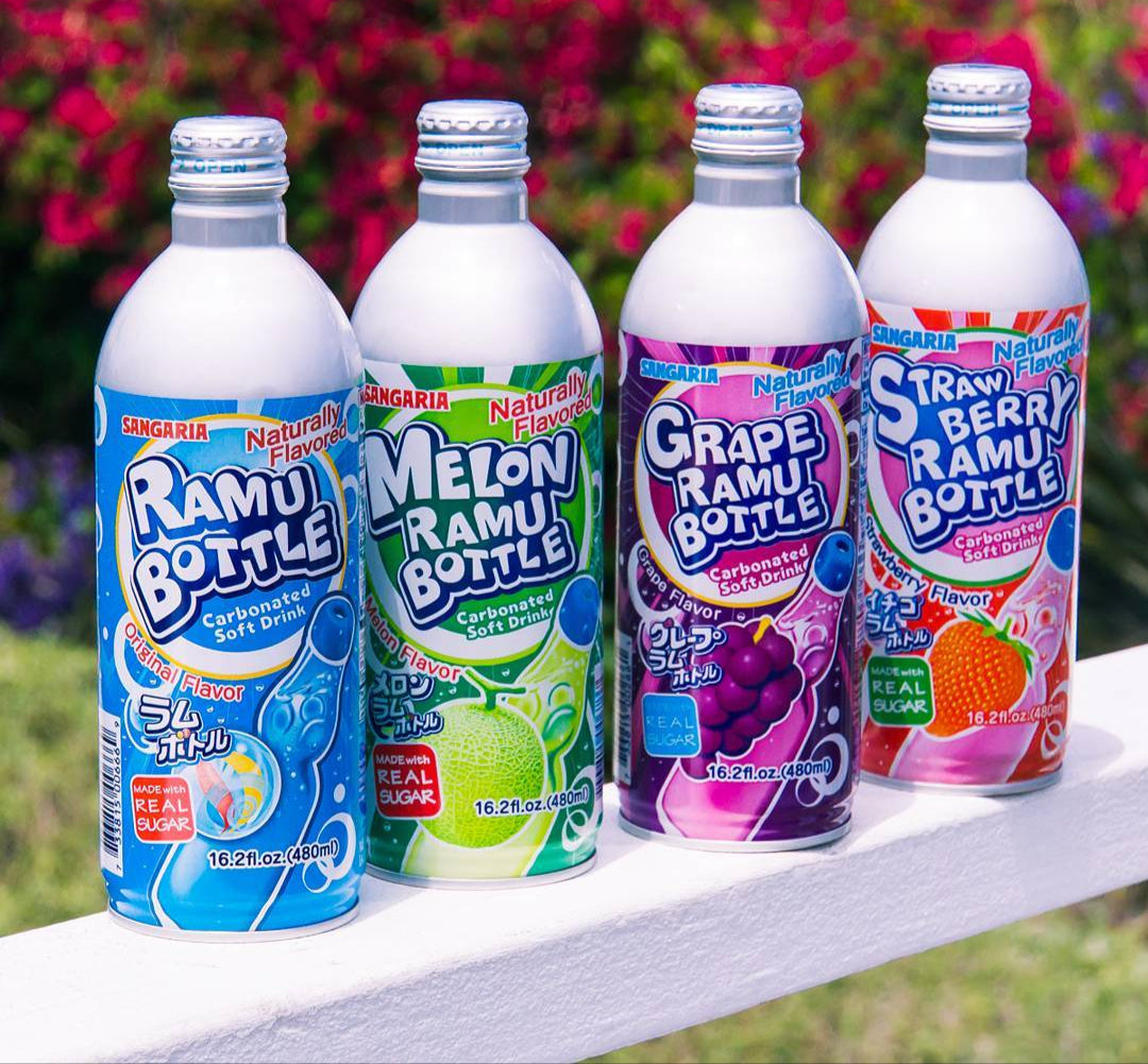 Sangaria Ramune is a popular carbonated soft drink imported from Japan.