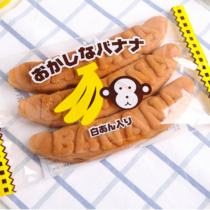 Okashina banana cake features soft and rich sponge cake with a fragrant banana flavored white bean paste filling. It is perfect as a snack or accompaniment to tea.