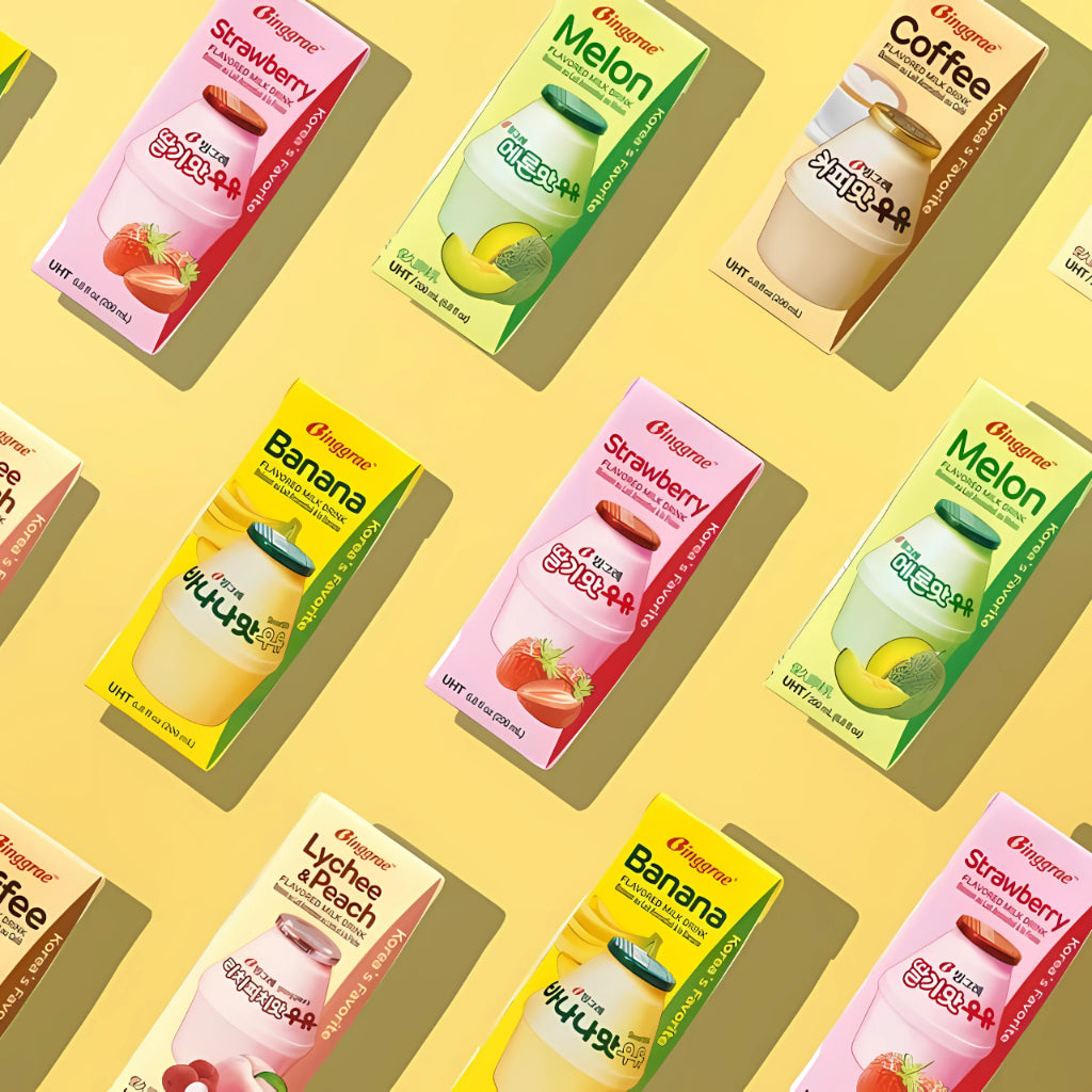 Binggrae Milk, particularly known for its Banana Flavored Milk, isa popular Korean flavored milk drink, produced by the South Korean multinational food and beverage corporation, Binggrae, known for its creamy texture and delicious flavor.