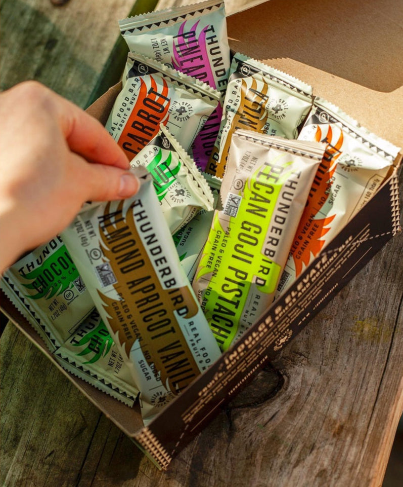 Thunderbird Bars are superfood energy snack bars crafted with simple, real food ingredients like fruits, nuts, seeds, and spices, offering a nutritious and delicious on-the-go snack.